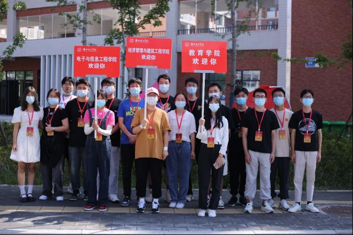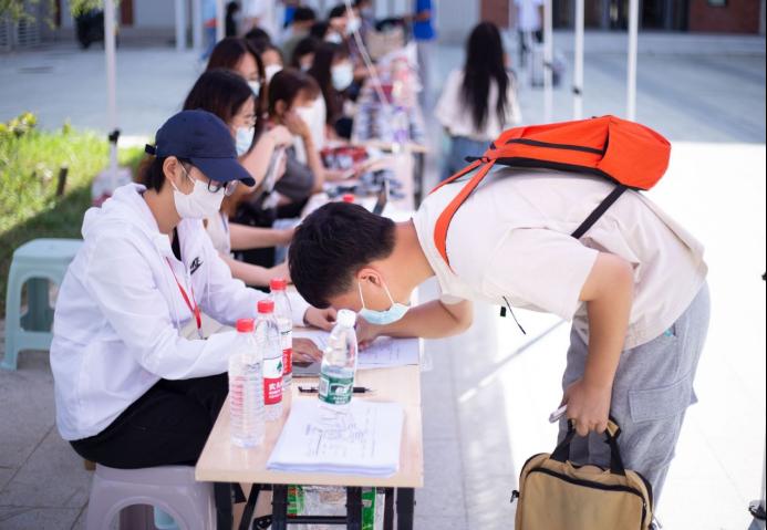 电子信息学院的新生跟随学校的大巴或摆渡车到达宿舍楼下,我们的志愿者会立即微笑的迎上去:“您好”,“欢迎来到学校”,并“抢”下新生手中沉重的行李,将新生带领到自己的宿舍,不辞辛苦的解答着他们提出的这种问题,引导新生办理入学手续、缴费、做核酸等。报道期间,因beat365将迎新工作准备充分、组织得力,所以迎新工作一直井然有序的进行着。
