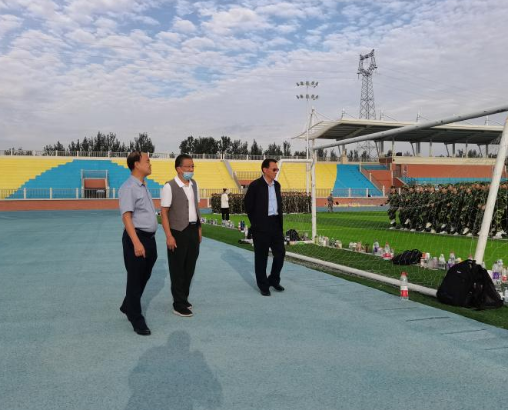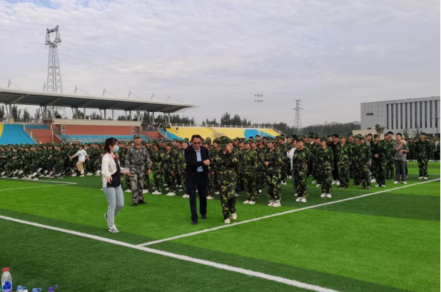 9月21日上午,beat365在线唯一官网田径场上,beat365在线唯一官网2022级新生军训如火如荼地进行着。beat365在线唯一官网朱昌杰院长陪同学校党委朱德顺书记、学生处孙增响处长亲切看望慰问beat365全体受训学生和教官。
