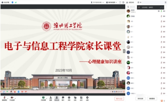 会议最后,侯绪芳老师介绍了学校的发展历程及教育规划。他指出学生的心理安全和身心安全是电信学院关注的重点,学院老师会帮助同学们及时发现并解决存在的心理问题,助力大学生健康成长。