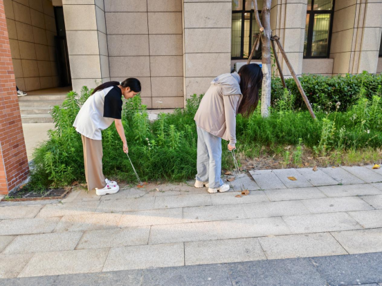 在活动中,同学们积极参与,热情高涨。大家分工合作,积极主动地捡起道路边和草丛中的垃圾,将各类垃圾投放进学校垃圾回收处的大垃圾桶中;用扫帚扫除堆积起来的落叶;清理砖缝中杂草,不放过任何一个卫生死角,用自己的实际行动为校园环境增添了一份清新与暖意。