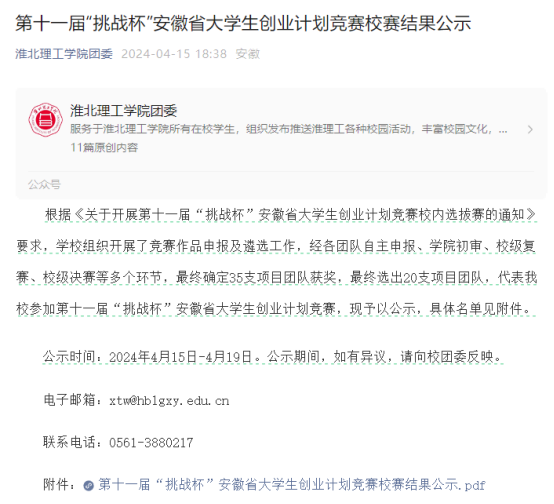 九、第十一届“挑战杯·华安证券”安徽省大学生创业计划竞赛自今年3月启动以来,全省各学校高度重视,精心组织,经过校赛选拔推荐,共收到全省127所学校推荐的1401件项目参加省级比赛,参赛学校和作品数量均创新高。经过组委会初审,共有127所学校的956件项目参加省级复赛评审,参赛项目按照普通高校和职业院校分组,按照科技创新和未来产业、乡村振兴和农业农村现代化、生态文明建设和绿色低碳发展、文化创意和区域交流合作、社会治理和公共服务五个赛道分类评审。