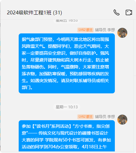 随着网络成为学生生活的重要组成部分,辅导员们积极“进群”,融入学生网络生活,搭建起与学生沟通的新桥梁。通过加入班级群,辅导员们及时了解学生在网络上的思想动态,引导学生正确使用网络资源,传播正能量。
