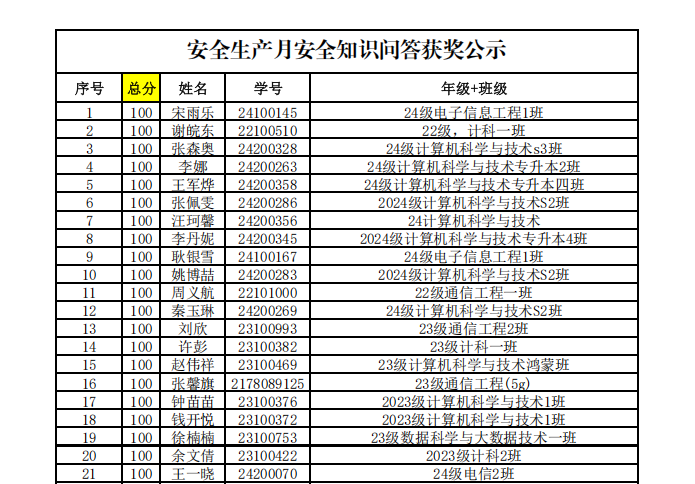 活动通知发布后,各年级学生积极响应,认真备考。在规定的截止时间(6月15日24:00)前,全院共有1036名同学顺利完成测试。经系统自动评阅与严格复核,涌现出一大批成绩优异的同学。其中,417名同学以满分(100分)的优异成绩脱颖而出(包括宋雨乐等同学),满分比例高达40.2%,充分展现了同学们扎实的安全知识基础和学院日常安全教育的良好效果。学院将对这417名满分同学进行通报表扬(具体名单详见学院公告)。