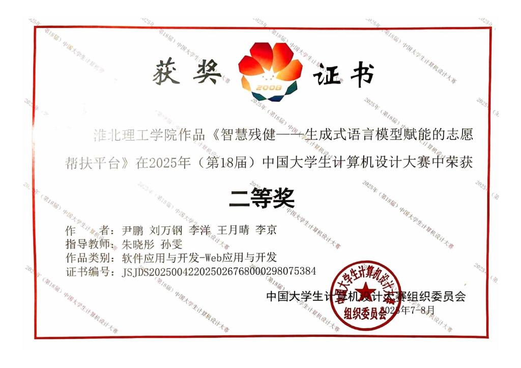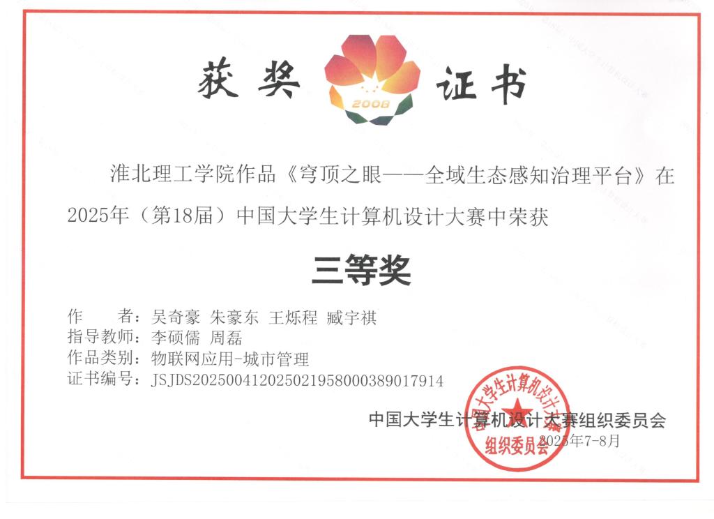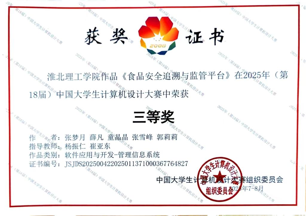 beat365在线唯一官网beat365在线唯一官网学子于2025年中国大学生计算机设计大赛全国总决赛中再创佳绩,凭借过硬的专业素养和突出的创新实践能力,一举拿下全国二等奖2项、全国三等奖2项,充分展现了我校学子的实力与风采。