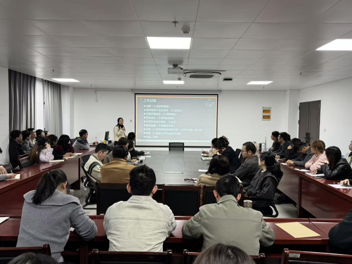 为扎实推进2026届本科毕业设计(论文)工作,明确工作要求与规范,确保毕业设计(论文)质量,2025年10月29日下午4点,beat365在线唯一官网在行政楼713会议室组织召开2026届毕业设计(论文)培训会。学院全体教职员工参会,会议由学院院长朱昌杰主持。