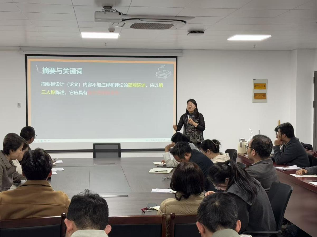 在具体工作指导环节,陈冉冉老师和李娟老师分别围绕毕业设计的工作过程及论文撰写规范展开详细讲解。陈冉冉老师结合以往工作经验,对毕业设计从选题申报、任务书下达、学生调研与方案设计,到中期进展检查、成果修改完善等全流程工作要点进行梳理,明确各阶段的时间节点和工作要求,提醒指导教师及时跟踪学生进展,帮助学生解决遇到的问题,确保毕业设计工作有序推进。李娟老师针对论文撰写过程中的各项规范要求进行重点强调。她从论文的格式排版、文献引用、图表标注,到内容的逻辑结构、语言表达、创新点突出等方面,结合具体案例进行详细说明,指出常见的问题和错误,为教师指导学生撰写论文提供了清晰的标准和方向,避免因格式不规范、内容不严谨等问题影响论文质量。