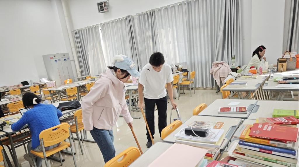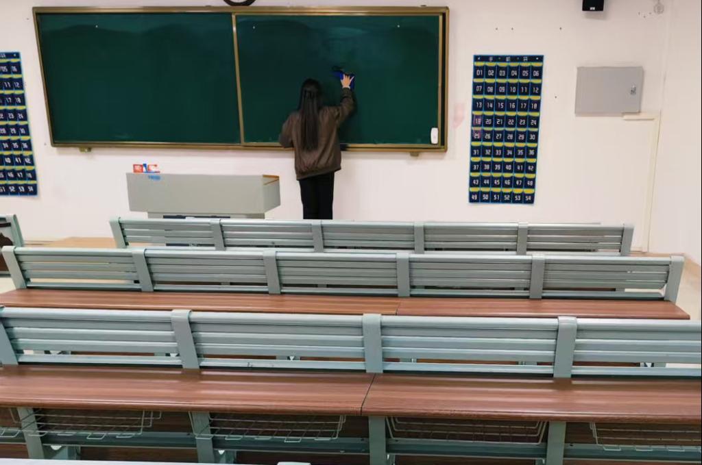 非固定教室与图书馆自习室的卫生清洁工作由勤工助学学生队伍负责。针对非固定教室使用频率高、人员流动大的特点,学生们重点对座椅扶手、门把手、开关等高频接触部位进行擦拭消毒,同时对墙角、窗台、插座缝隙等卫生死角进行深度清理,有效消除卫生隐患;在图书馆自习室,学生们秉持“轻操作、不干扰”的原则,在不影响读者学习的前提下进行清洁,整理散乱书籍,清除桌面残留污渍,维护安静、整洁的阅读空间,为广大师生营造了舒适的学习环境。