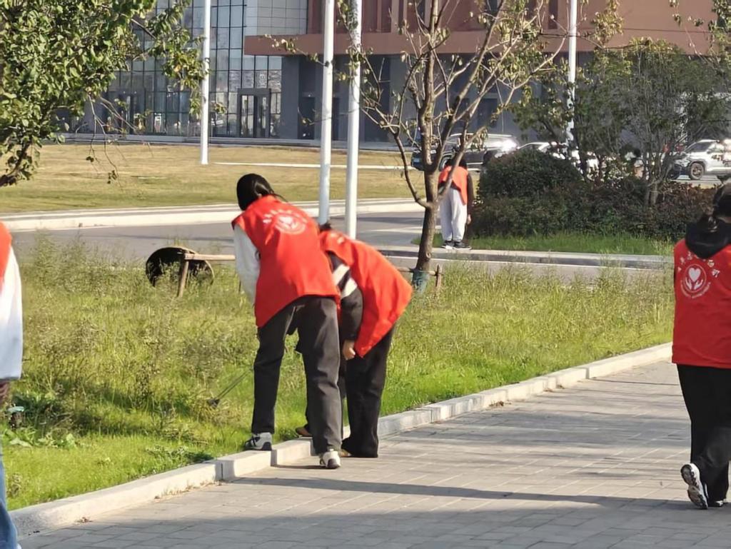 此外,校园公共区域的卫生清洁工作同步推进。负责清洁同学对校园内主干道、草坪绿地、教学楼周边区域及公共垃圾桶周边进行集中清扫。学生们手持夹子、垃圾袋等工具,清理路面垃圾、落叶,捡拾草坪内的杂物,同时对公共垃圾桶进行清洁与周边环境整理,有效改善了校园公共区域的卫生状况,助力营造干净、美观的校园整体环境。
