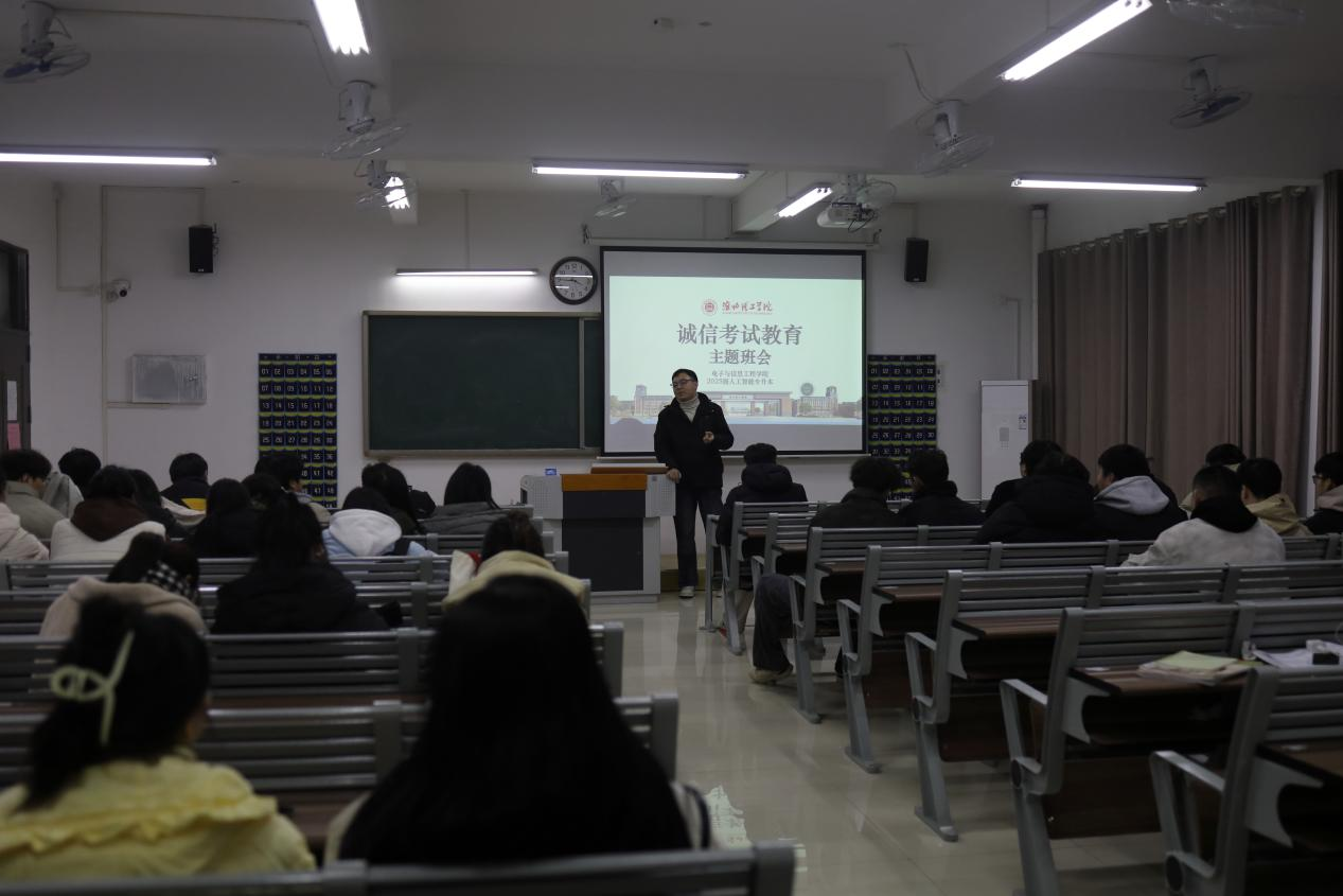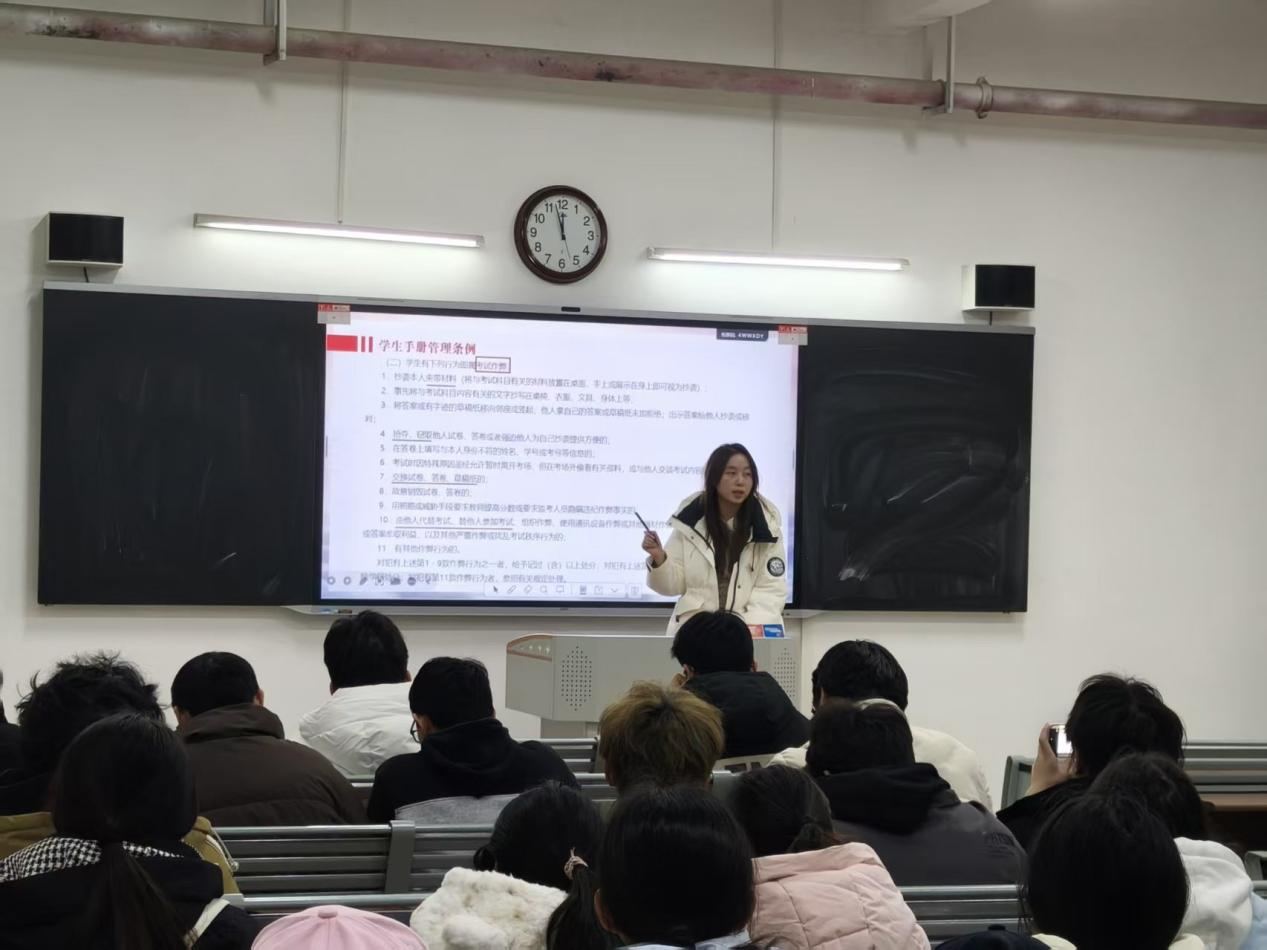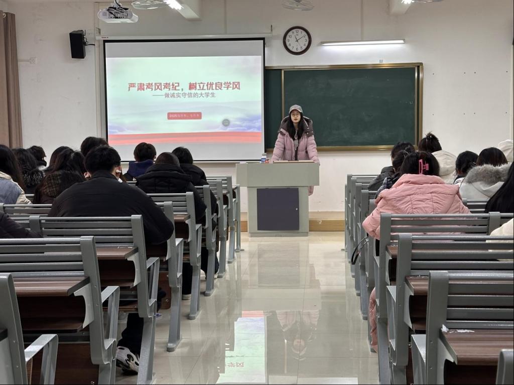 各班级班会通过多种形式,深入学习《beat365在线唯一官网全日制普通本科学生学籍管理细则》、《beat365在线唯一官网学生违纪处分办法》等相关规章制度,明确考试违规行为的认定标准和相应处分措施,包括考试违纪、考试作弊等,让学生意识到考试作弊带来的严重后果:一次作弊行为,不仅会导致课程成绩无效,受到纪律处分,更会在个人档案中留下无法抹去的污点,影响未来的升学、就业乃至人生发展。
