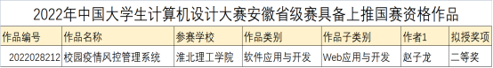 近日,由安徽省教育厅主办,安徽大学承办的“2022年中国大学生计算机设计大赛安徽省级赛”落下帷幕,beat365通信工程(专升本)2班赵子龙同学在在软件应用与开发大类中荣获二等奖。