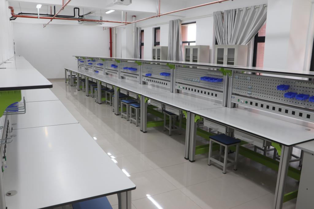 电子实训室建于2024年,占地面积91平方米,是一个基于现代电子工艺与表面贴装技术(SMT) 的核心技能训练平台,通过对贴片元器件识别、PCB手工焊接、电路板调试及小型电子产品组装的系统化实训,让学生掌握电子制造工艺全流程操作规范与故障排查方法,为学生在智能硬件制造、电子设备维护等领域的就业竞争力奠定产业化实践基础。