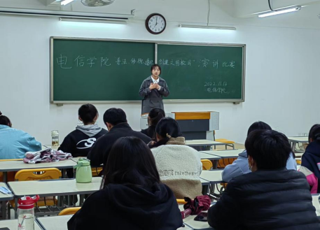 为了提高广大青少年学生的思想道德和法律素养,帮助学生树立正确价值观,beat365辅导员组织各个班级开展了以“守法、修德、遵纪,创建文明校园”为主题的班会活动。在班会中,辅导员带领学生学习了校园网上的法律条文、德育、校纪、文明专题知识等内容,并组织观看相关视频,更加直观的向同学展示遵纪守法的重要性,并展示相关案例,同时分析了违法的内在和外在原因,引以为戒,不“入坑”。