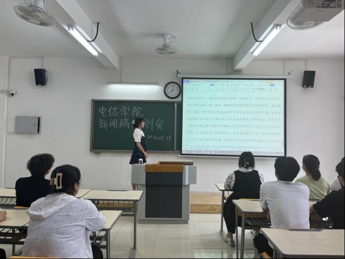 培训会上,顾馨悦同学首先指出宣传部各成员平时在撰写新闻稿过程中出现的问题,并针对这些问题给出了相应的解决方案。随后通过PPT演示进行“如何写好新闻稿”的说明,她表示希望各位成员在撰写新闻稿时注意标点符号,连接词等问题并及时加以修正。各宣传部成员也对“如何写好新闻稿”发表了自己的见解,积极讨论,取长补短。
