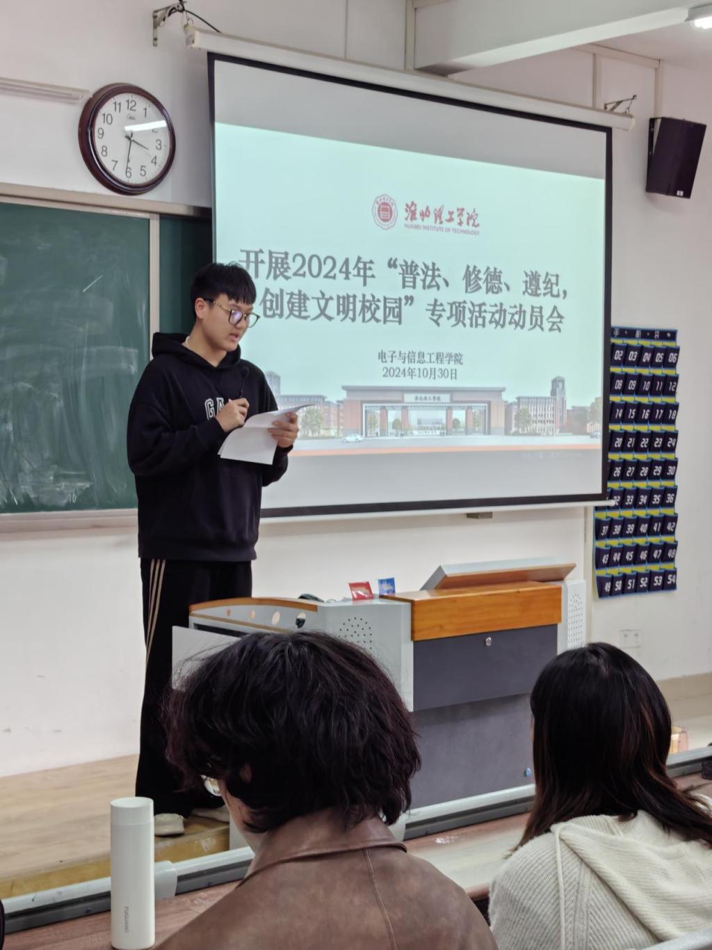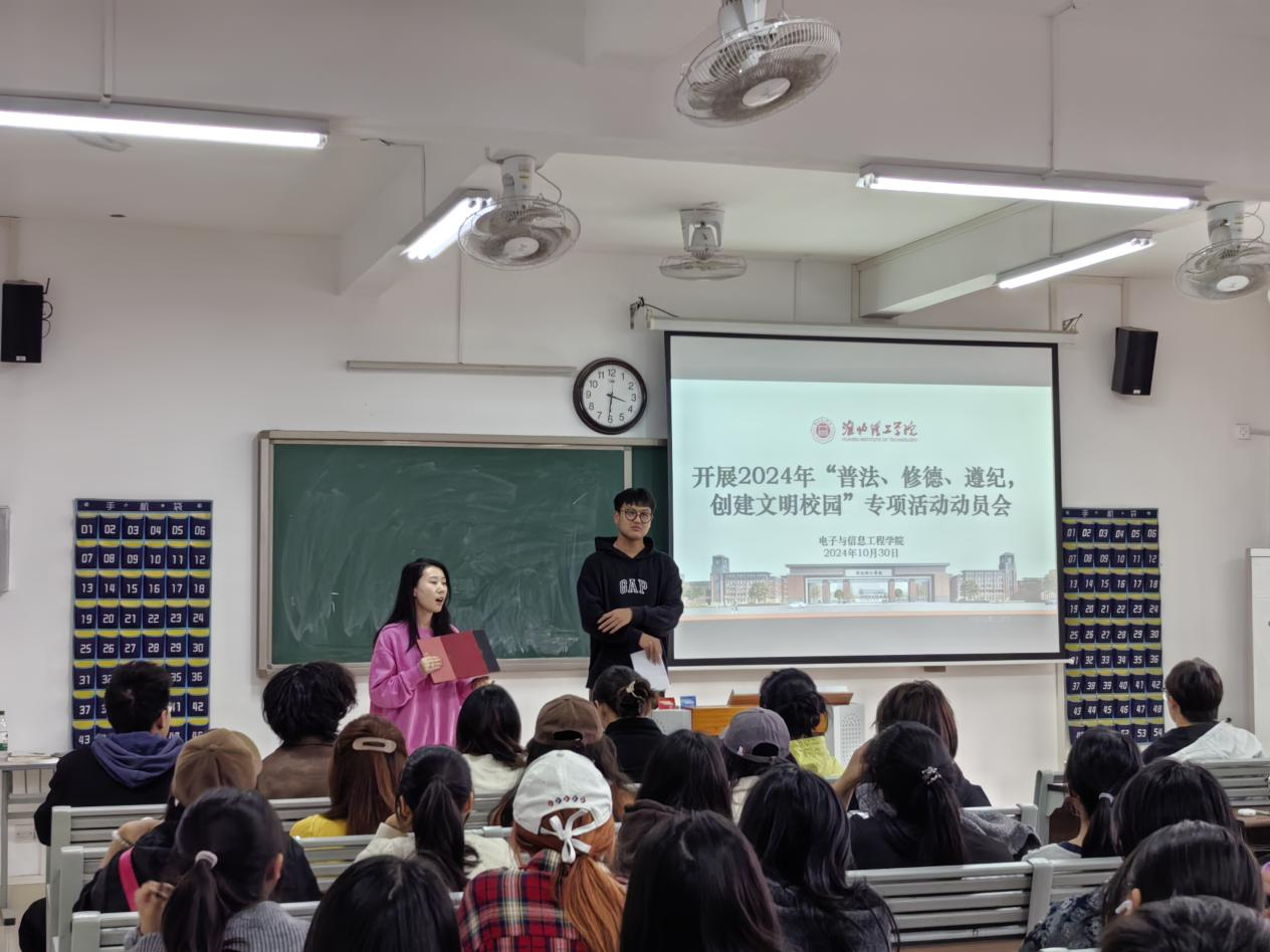 为迎接学校2024年“普法、修德、遵纪,创建文明校园”专项活动,beat365在线唯一官网于2024年10月30日召开“普法、修德、遵纪、创文明校园”动员大会,学院老师和2024级班委参会。