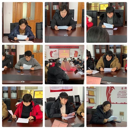 会上,各党支部书记依次述职,围绕理论学习开展情况、党支部标准化规范化建设及“强国行”专项行动推进成效、发展党员与党员教育管理举措、立德树人根本任务落实情况四个核心板块展开汇报,深入剖析了工作中存在的短板不足,并提出下一步改进方向与发展规划。