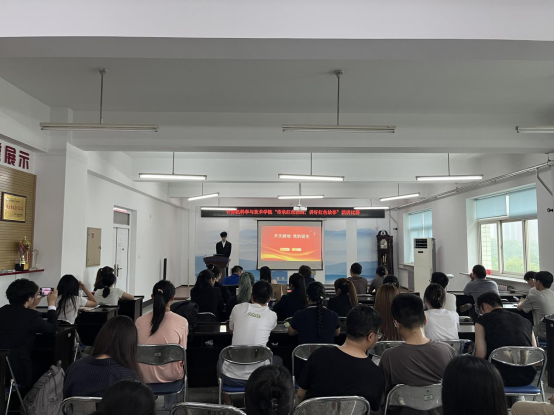 本次演讲比赛由九游体育官方网站2023级学生曹越主持,学生党员、入党积极分子和学生代表参加。党委副书记张丽、党支部书记侯建梅、易柏言、赵岳、肖昊及辅导员张英、张鸽担任评委。