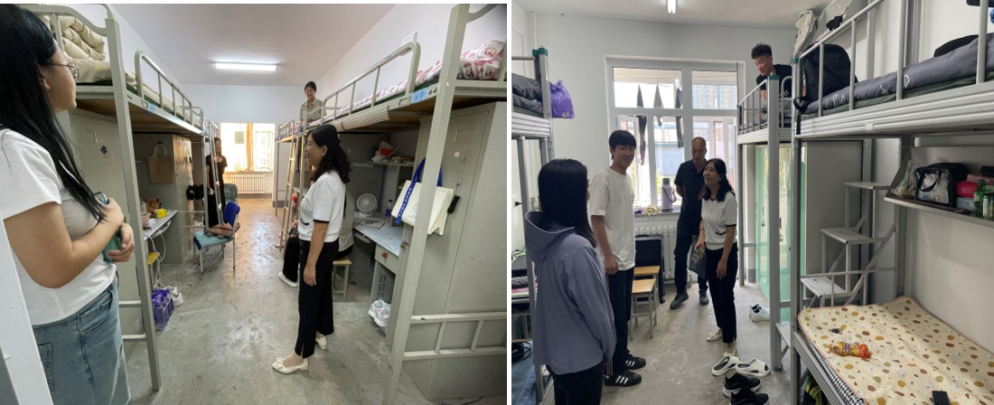 家长会后,学院领导带领新生辅导员走访了学生宿舍,与同学及家长们亲切交谈,提醒同学们谨防诈骗、注意宿舍用电安全;叮嘱同学们规律作息,保持良好卫生习惯,与室友和睦相处、互帮互助,尽快适应大学生活;同时勉励新生们,坚定理想信念,珍惜大学时光。